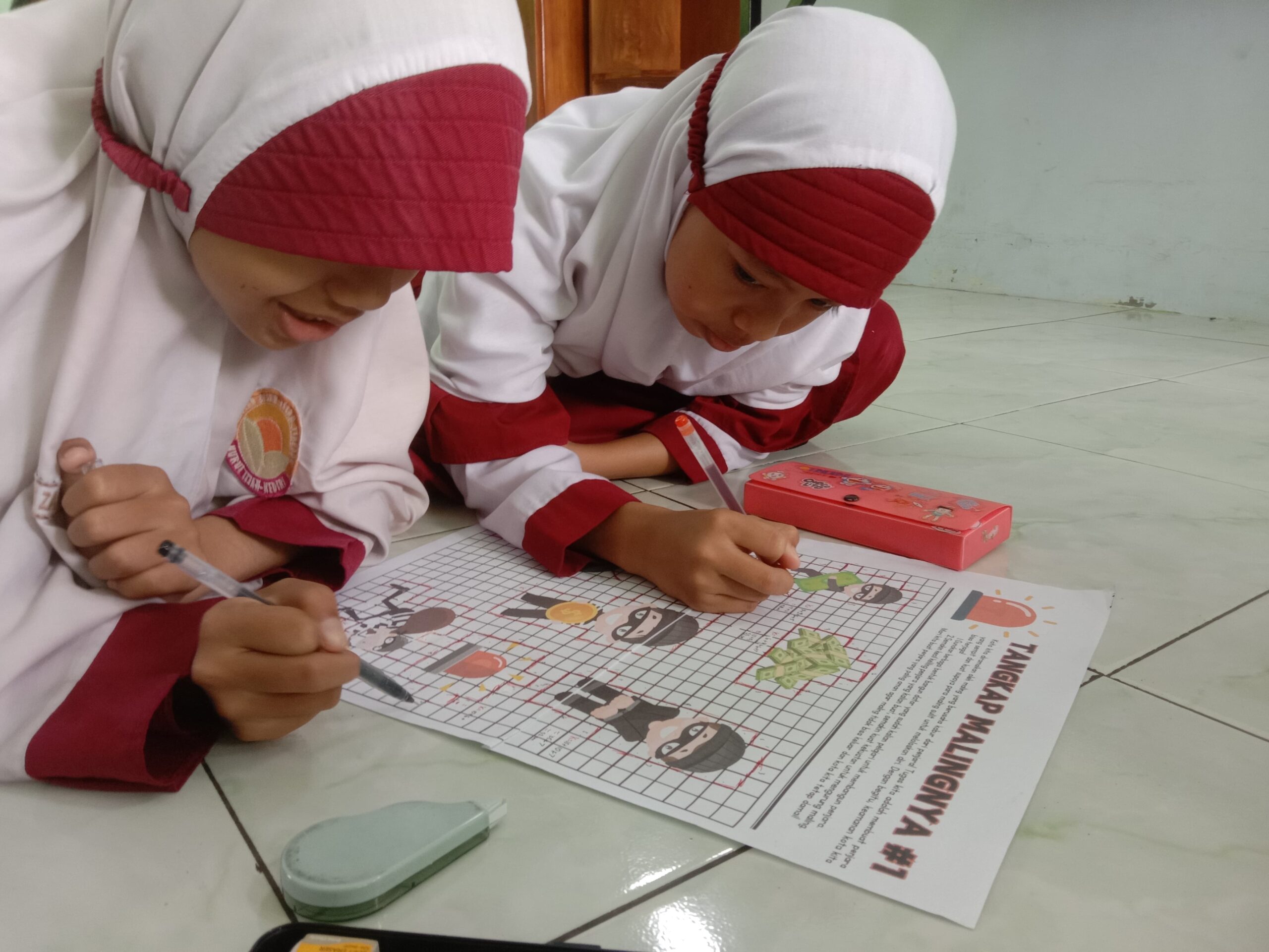 Dalam permainan ini, siswa diminta untuk “menangkap maling” dengan cara memberi batas sekecil mungkin pada gambar maling sesuai kotak yang tersedia. Setelah itu, mereka mewarnai batas tersebut agar hasilnya tampak menarik dan menyenangkan.