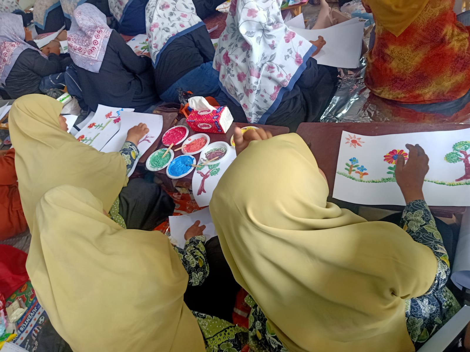 Pelatihan yang berlangsung mulai pukul 10.00 WIB ini dipandu oleh dua instruktur berpengalaman, yaitu Kak Ade Tri Wahyuningsih, S.Pd., dan Kak Reni Rahmawati, S.Sn.. Mereka membagikan teknik melukis dengan jari, mulai dari dasar pencampuran warna hingga aplikasi kreatif yang dapat merangsang motorik halus serta mengembangkan imajinasi anak.