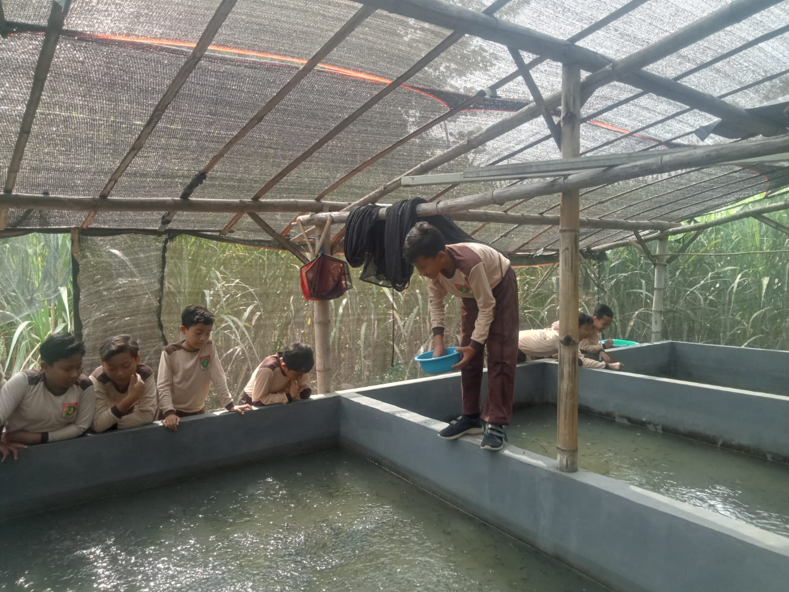 Di tempat lain, suasana tak kalah seru terjadi di peternakan susu dan lele. Anak-anak belajar memberi pakan ternak, memahami cara perawatan, dan mendengarkan kisah para peternak tentang kesabaran serta kerja keras yang dibutuhkan untuk bertahan dan berkembang. Ada tawa, ada rasa kagum, dan ada pula cerita polos dari siswa yang berkata, “Ternyata kerja di sini capek, tapi seru ya.”